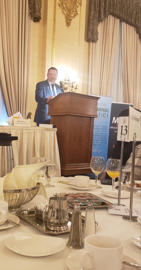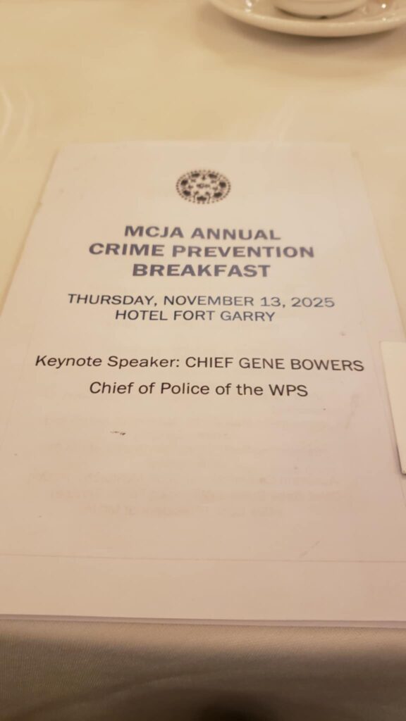 Chief Gene Bowers had the privilege of addressing a packed room at the 2025 Manitoba Criminal Justice Association Crime Prevention Breakfast. Stakeholders from across the criminal justice community came together for this annual event which has become a long-standing highlight of Crime Prevention Month in Manitoba.